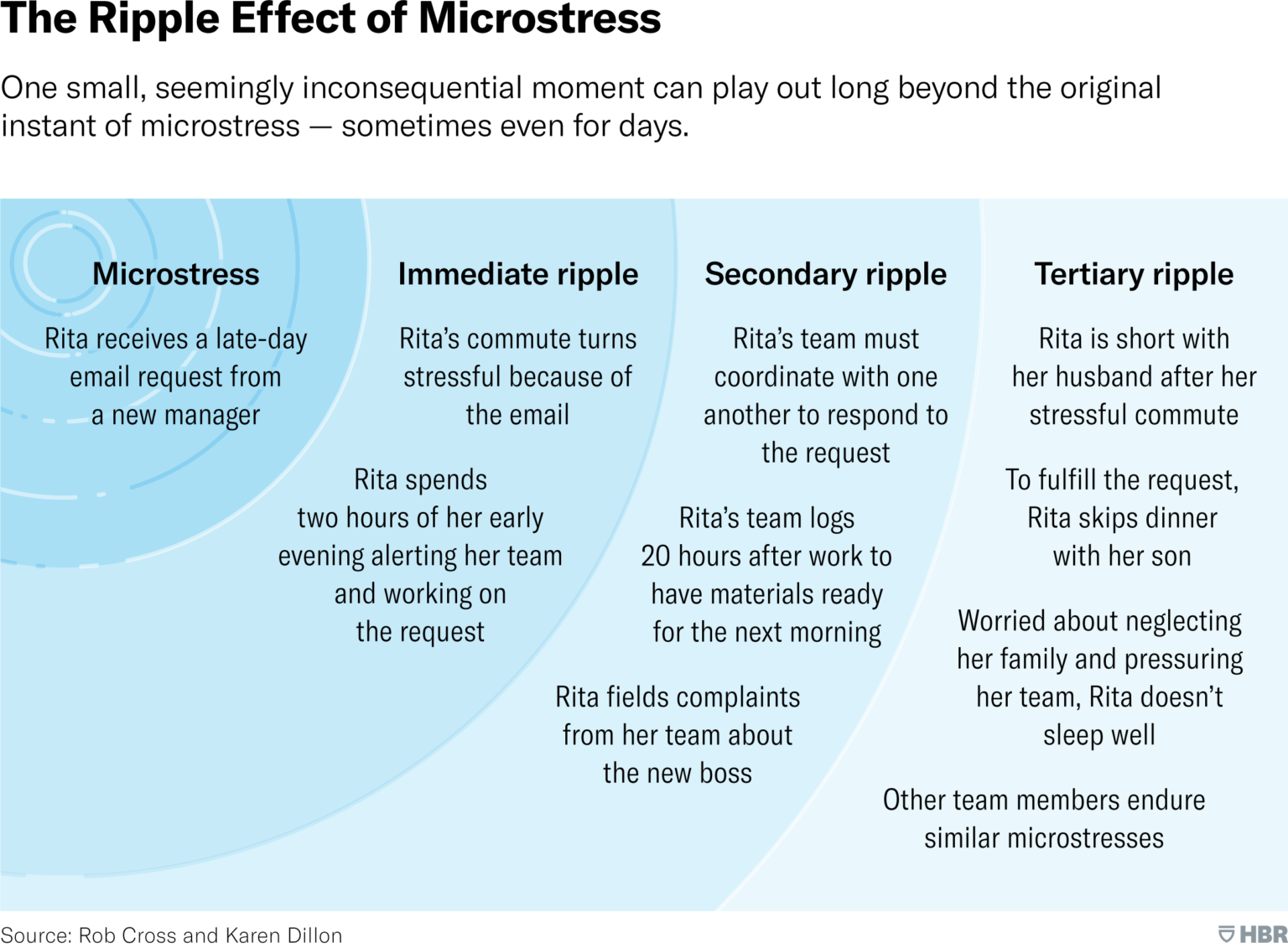 Microstress isn’t obvious. Because small stressful events are flying under the radar, they do not trigger the same response mechanisms that more obvious stress generates. Unfortunately the microstress is still there, lodged in our brain, but the brain isn’t managing it because a regular stress indicator wasn’t perceived. “So microstresses accrue, one on top of another.”