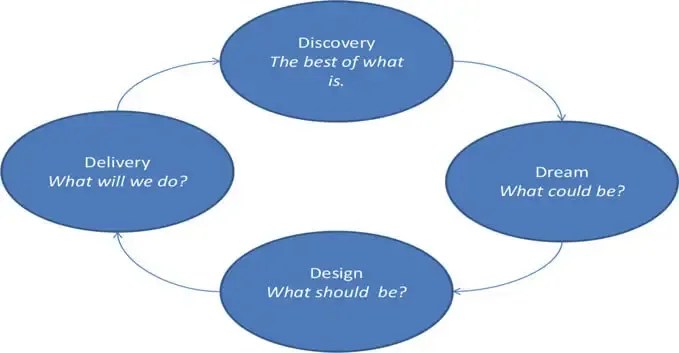 While artificial intelligence is seeping into the way we work and live, appreciative inquiry is a collaborative, strengths-based approach to introducing change in an organizations. The positive nature of appreciative inquiry resonated with me. There are so many times an organization seeks to “fill a gap”, whether real or imaginary. I believe often the best way to “fill a gap” is to look within. Instead of hiring a “star” from another organization who has done the “exact same thing”, whenever possible I favor sourcing and growing internal talent. Identifying who has the desire, attitude, and approach to bring people together collectively towards the future vs. simply cutting & pasting a person who did something similar elsewhere. The other AI promotes such a model by looking for the positive instead of the negative (or gaps).